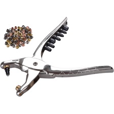 bőrlyukasztó klt.; fogó 225mm + 6 db lyukasztó fej: 2,5-3,0-3,5-4,0-4,5-5mm + 2 db szegecselő fej + 100 db szegecs