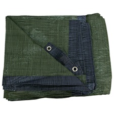 takaróponyva, vízálló, de nem UV álló; 150g/nm, 4×5m névleges méret, valós méret: 3,85×4,85 m, PE, lefűző lyukakkal